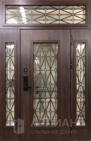 По отделке двери с фрамугой ничем не ограничены: внешнюю поверхность делают в порошковом покрытии шагрень или антик, в цвете по RAL — от строгого серый до эффектных оттенков. Можно заказать черную или серую недорогую дверь в подъезд, где главное — антивандальные свойства, или выбрать дверь для улицы с отделкой массив дерева, винорит, венге и другими декоративными панелями.