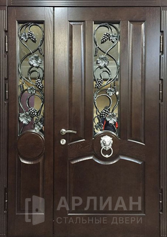 Со стеклянными вставками металлическая дверь для загородного дома№6