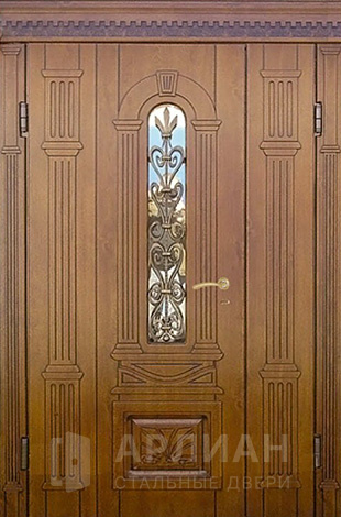 Арочная двустворчатая стальная дверь для загородного дома №125